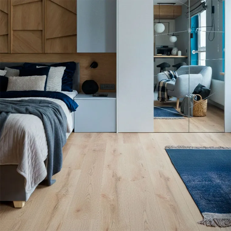 Su ancho aprox. 18cm, es el formato más tradicional que permite facilidad y rapidez de instalación, además, (M), las piezas no biseladas en sus bordes crean superficies con sensación de continuidad. Requiere el uso de antiacústico de 2mm para un adecuado proceso de instalación