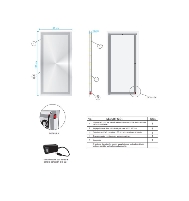 Nombre: ESPEJO 50*100CM SAHARA LED PLATA